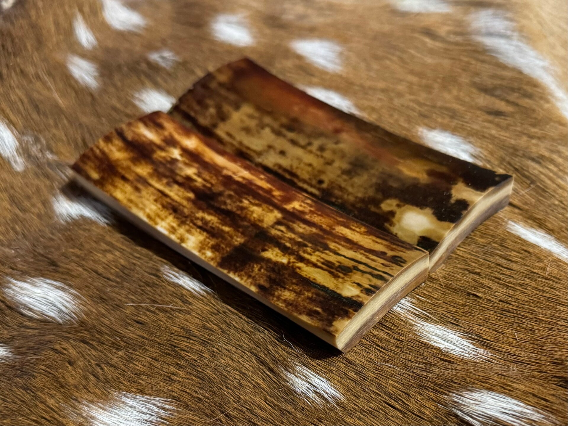 This premium, set of mammoth tusk scales exhibits rich, dark tones and unique character. Ethically sourced and legally acquired, this ancient material will elevate your next knifemaking project.